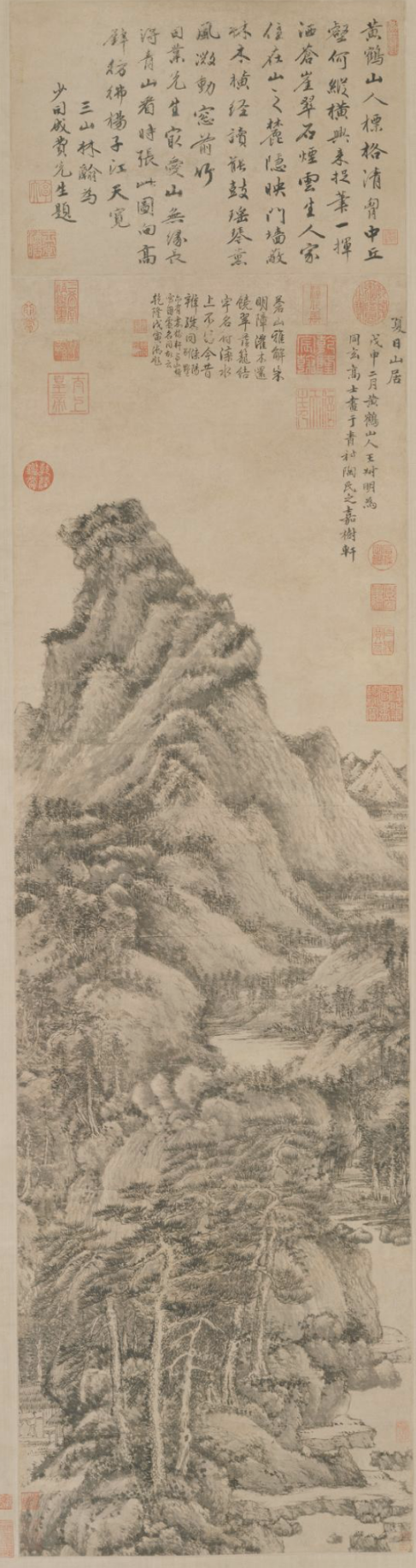 * 王蒙(왕몽, 1308-1385) : 자는 숙명(叔明), 호는 황학산초(黃鶴山樵), 향광거사(香光居士). 저장성 오흥 사람. 조맹부의 외손자. 원말 각지의 농민기의로 관리와 대지주가 살육되는 난세에 관직을 버리고 황학산(黃鶴山)에 은거했다. 이후로도 입산과 하산을 반복하며 입신과 실리를 번민했다.