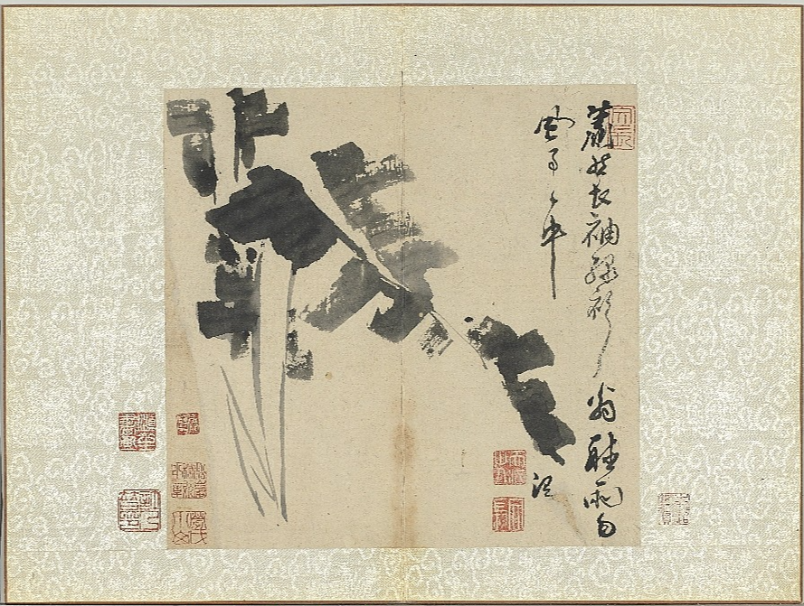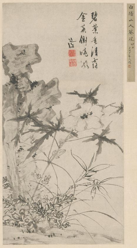 『화훼책 花卉册』 부분 , 종이에 수묵, 28x37.9cm, 상해박물관, 1544 / 「규석도 葵石图」, 종이에 수묵,68.6x34cm, 북경고궁박물원 近日俚鄙匠習,宜學沒字碑為是。