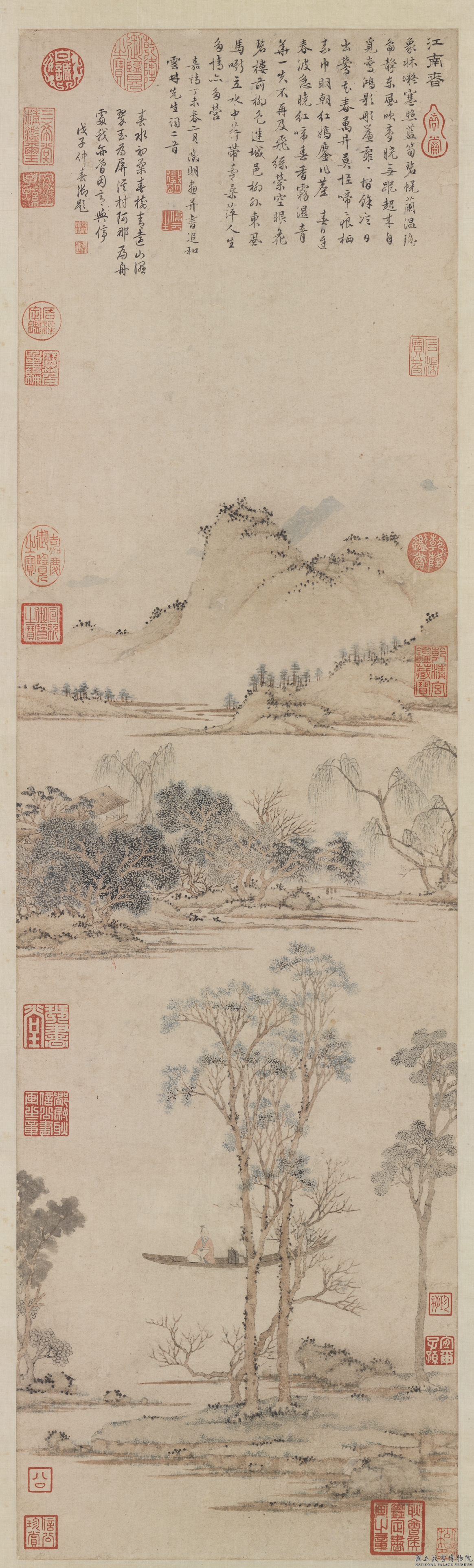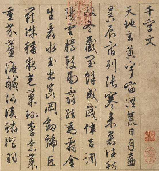 「초서천자문 草書千字文」, 대만국립고궁박물원 / 「三友图卷」부분, 종이에 수묵, 26.1x475.5cm, 북경고궁박물원 / 「강남춘도 江南春圖」, 종이에 수묵담채, 30x106cm, 대만국립고궁박물원 * 沈石田(심석전): 명나라 문인화가 심주(沈周, 1427~1509)를 말함. 자는 계남(啓南), 호는 석전(石田), 백석옹(白石翁), 옥전생(玉田生), 유죽거주인(有竹居主人) 등이 있다. 가문 대대로 서화를 애호하여 자신도 시서화에 능했다. 평생 벼슬하지 않고 당인(唐寅, 1470-1524), 문징명(文徵明, 1470-1559), 구영(仇英, 1494?-1552)과 함께 명사대가가 되었다.