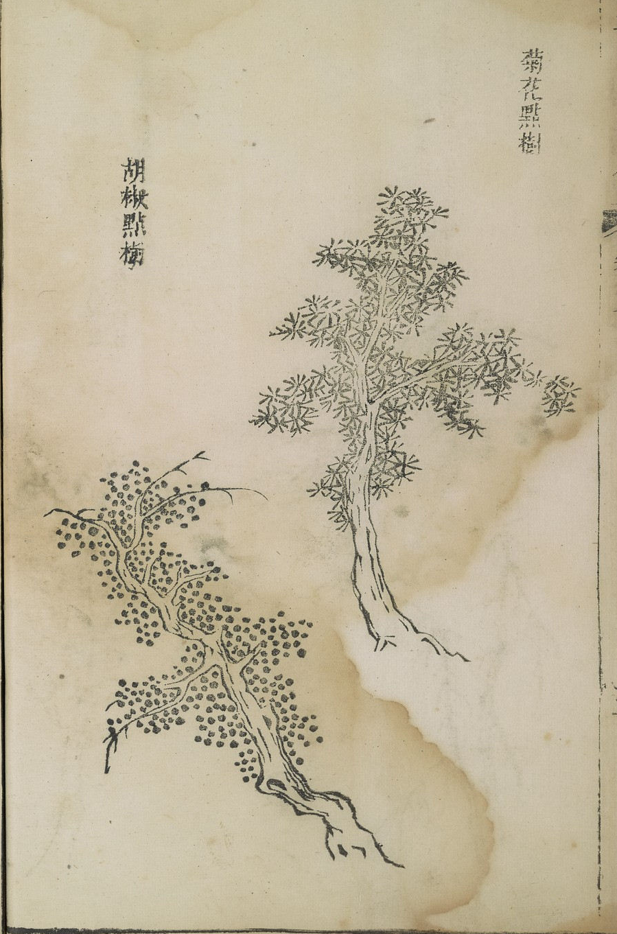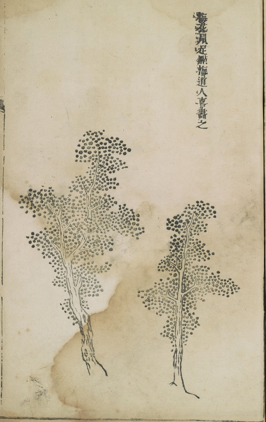 호초점수。후추 열매 모양의 점법으로 그린 나무.