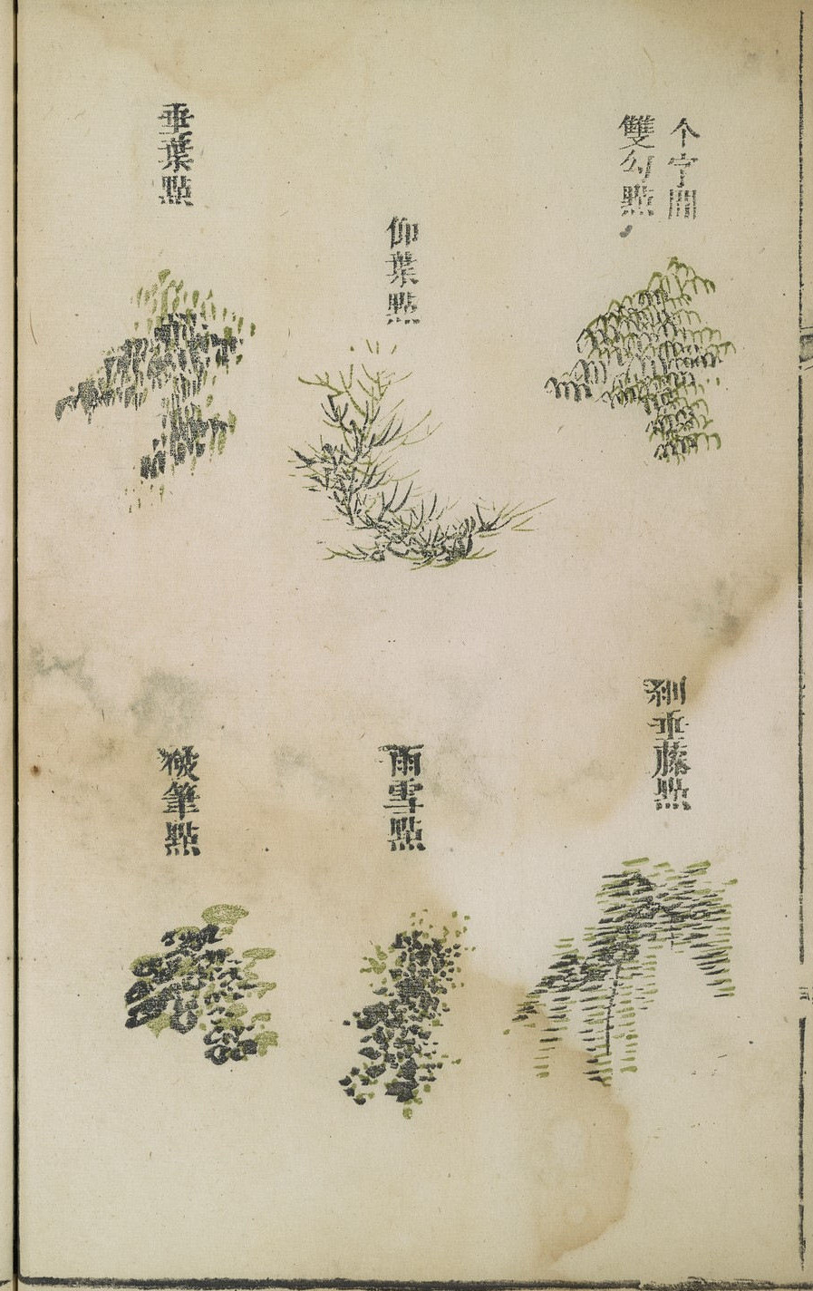 點葉勾葉不復分明某家用某點,某樹用某圈者,以前後各樹中俱載有古人點法 。