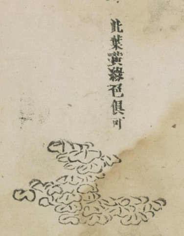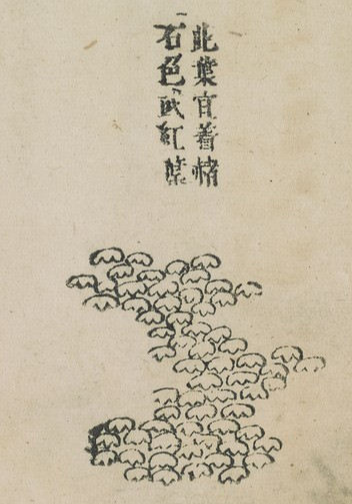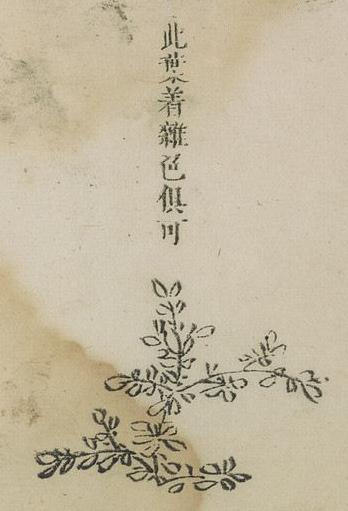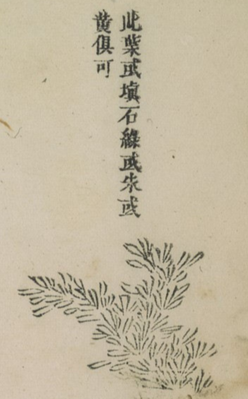 이 잎은 어떤 경우에는 석록을 칠하는데, 주사나 황색 모두 괜찮다.