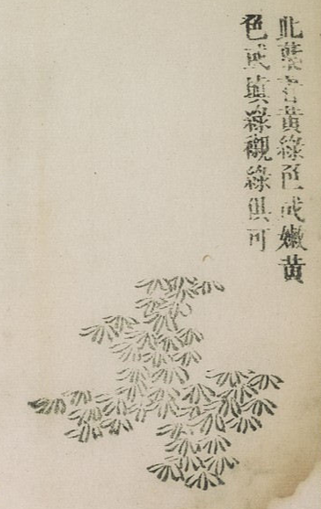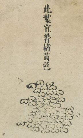 이 잎은 마땅히 자황색 이나 눈황색을 칠하는것이 적당하다.
