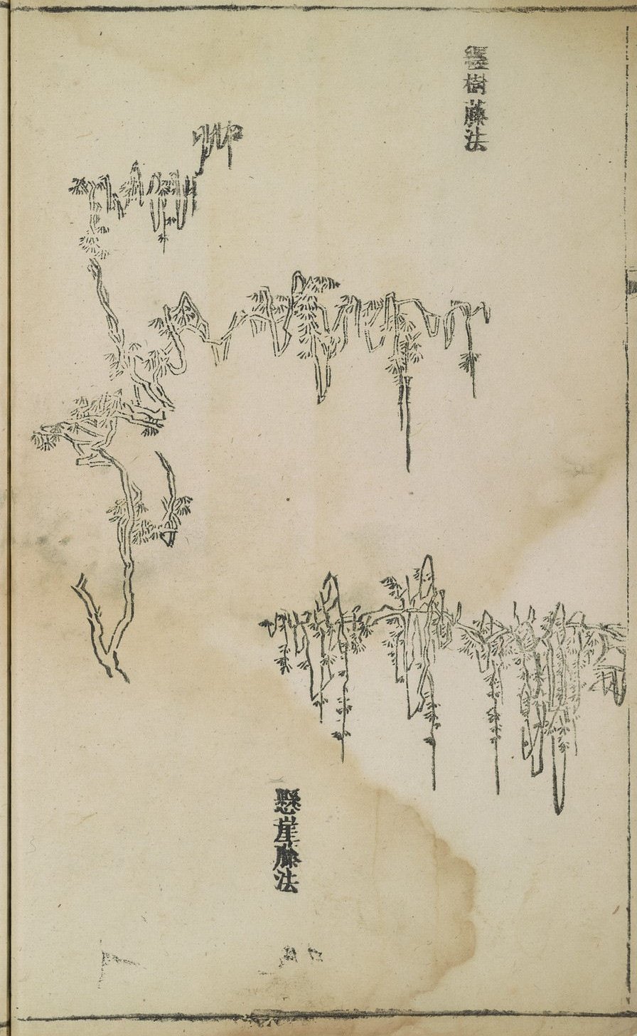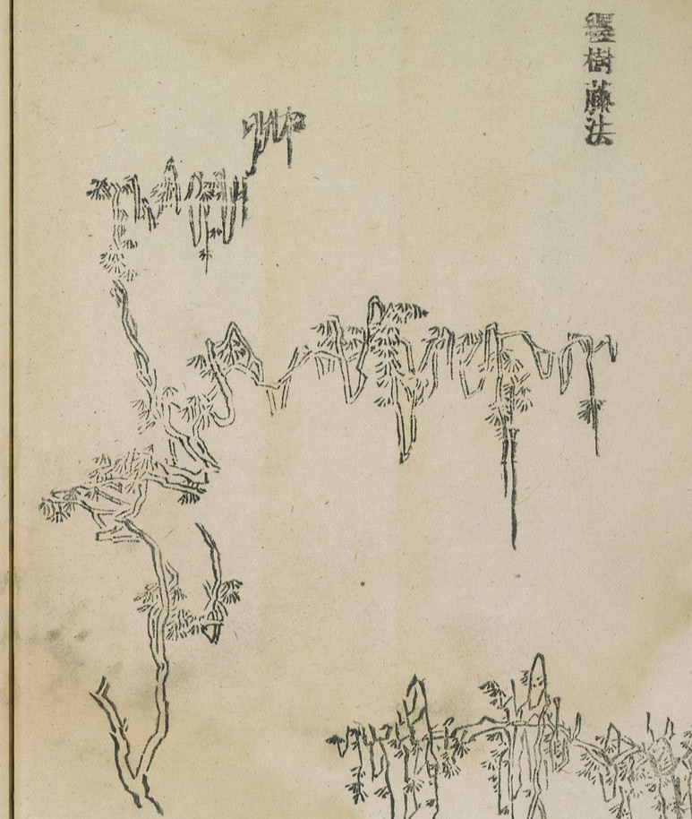 來葉法芥子园画传.初集.5卷.王概等编.清康熙年间彩色套印本_页面 纒樹藤法