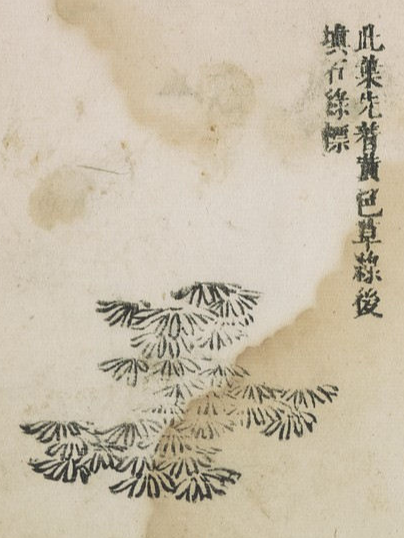 上三尖用藤黃亦可,像娑羅樹及椿栗諸葉。