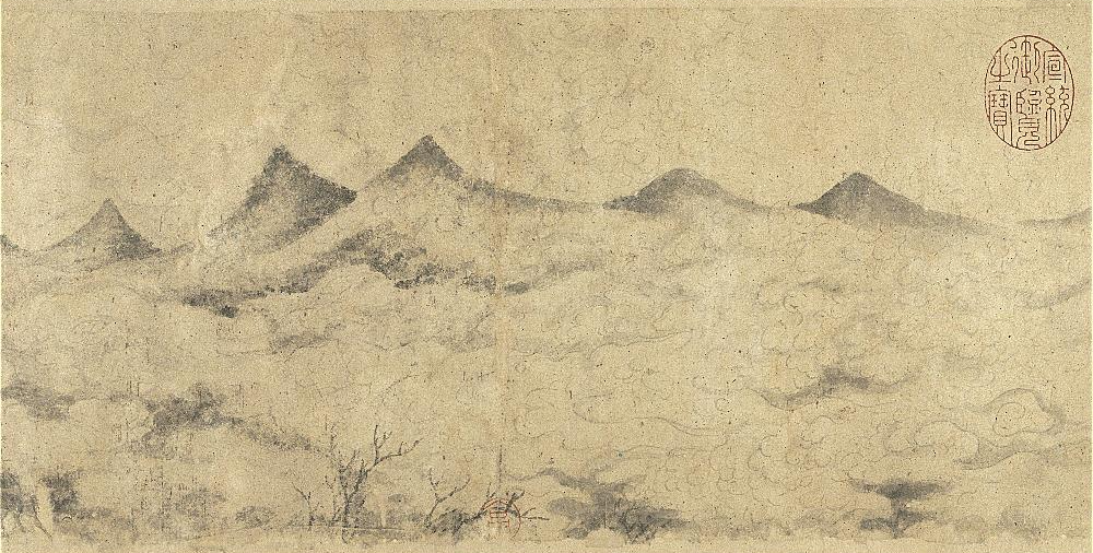 [좌] 宋, 米芾, 춘산서송도 春山瑞松圖, 종이에 수묵, 35x44.1cm, 대만국립고궁박물원 / [가운데, 우] 宋, 米芾, 운산병자서발권 雲山並自書跋卷, 종이에 수묵, 20.9x204.9cm, 대만국립고궁박물원