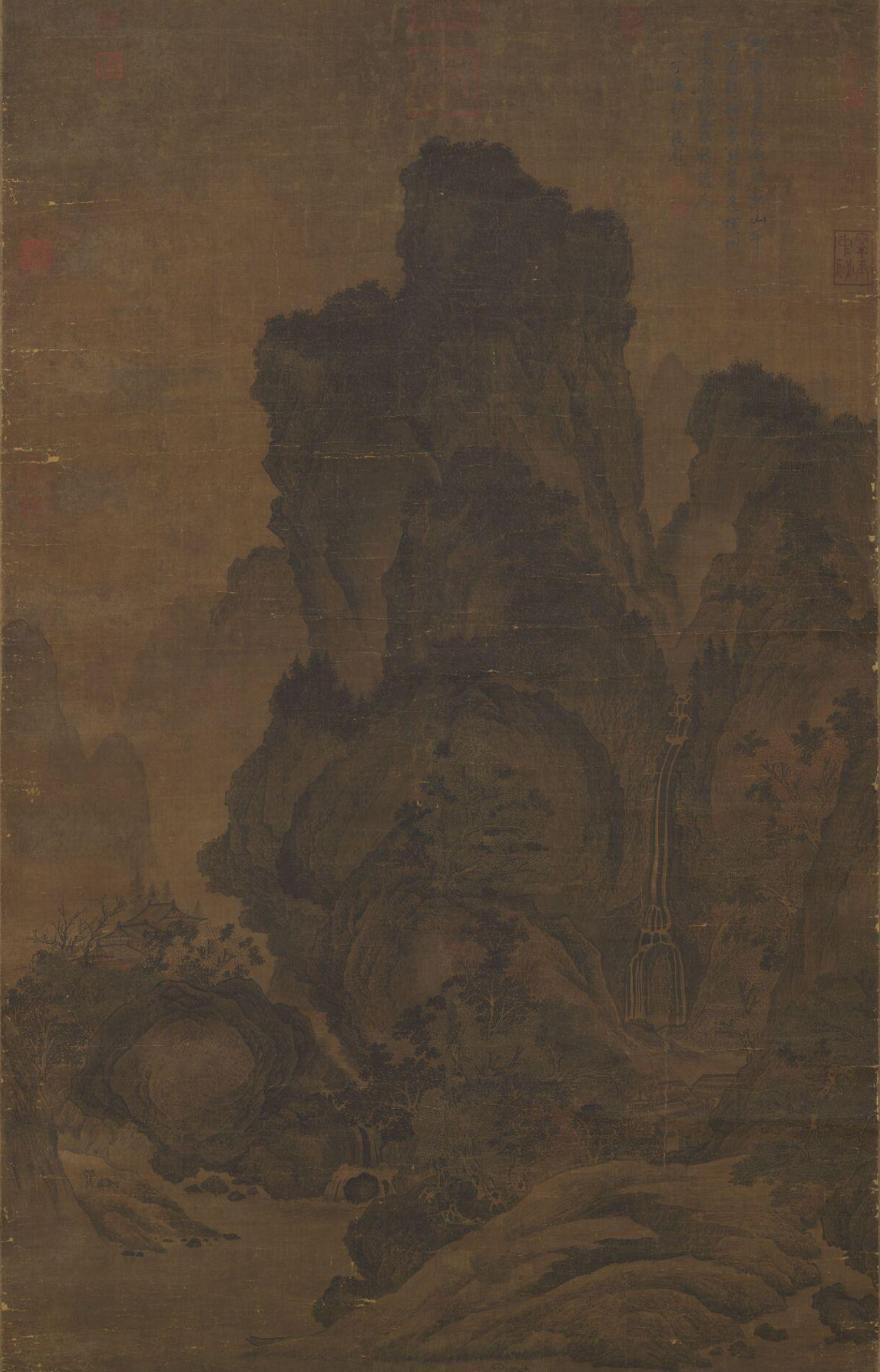 [좌] 唐, 張璪, 구당삼협 瞿唐三峽, 비단에 채색, 57.5x40.8, 대만국립고궁박물원 / [가운데] 五代梁, 荊浩, 광려도匡廬圖, 비단에 수묵, 185.8x106.8cm, 대만국립고궁박물원 / [우] 五代梁, 關仝, 산계대도도 山谿待渡圖, 비단에 담채, 156.6x99.6cm, 대만국립고궁박물원 * 郭忠恕 (10c 후반) : 자는 서선(恕先), 그림은 관동(關仝)을 배웠다.