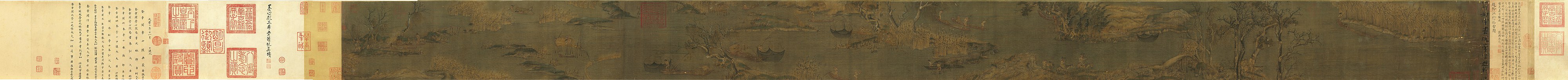 五代南唐, 趙幹, 강행초설도 江行初雪圖卷, 비단에 채색, 25.9x376.5cm, 대만국립고궁박물원 * 趙伯駒 (조백구, 남송) : 송이 종실로 태조의 7 세손, 자는 千里, 산수화, 화과, 영모를 잘 그렸다.